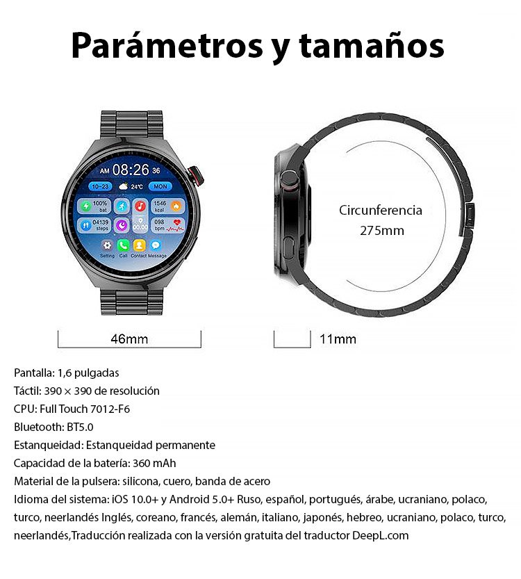 Reloj Watch4 Pro con correa de acero y medidor de glucosa